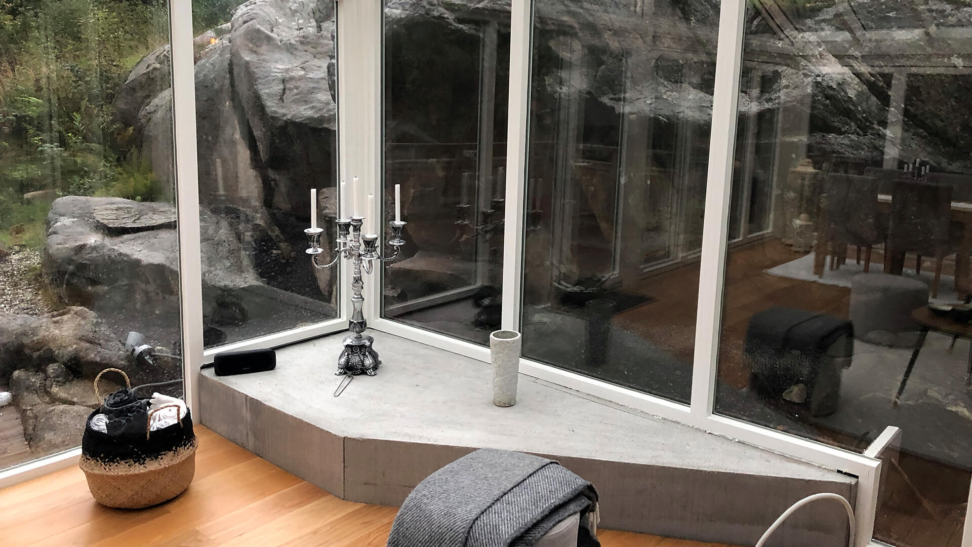 När familjen Berggren i Göteborg anslöt sitt uterum till det befintliga huset ville de ha kvar så mycket natur som möjligt. Och så blev det. En anpassning till klippan fick göras för att undvika att spränga bort berget, och detta har förvandlats till en originell del av inredningen. Ena hörnet går dessutom att öppna upp helt, vilket under sommaren ger en fantastisk yta med trädäcket utanför. Resultat? Numera lever de i uterummet. Även tv:n har fått flytta ut.