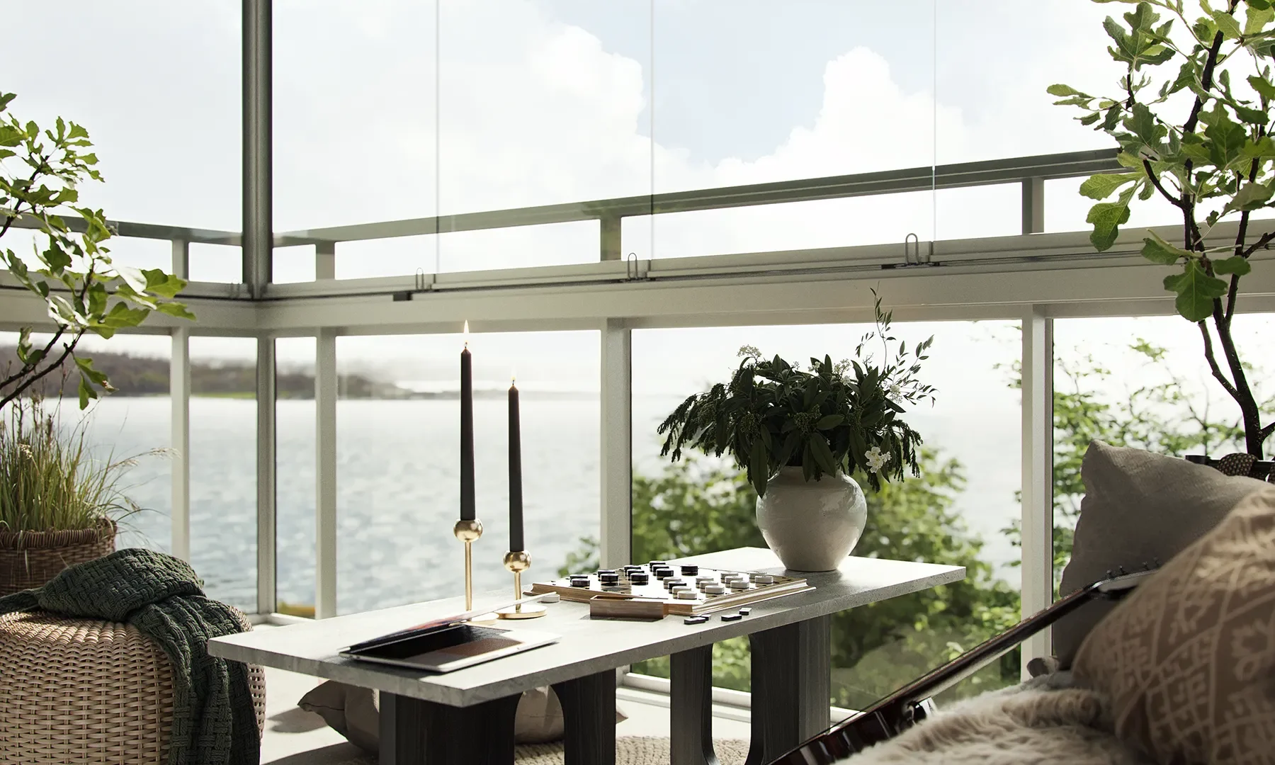 Samtidigt ger den ramfria lösningen ett ljust och öppet intryck även när balkongen är stängd. Systemet rör sig mjukt och stabilt och kombinerar enkel hantering med en ren, modern estetik.