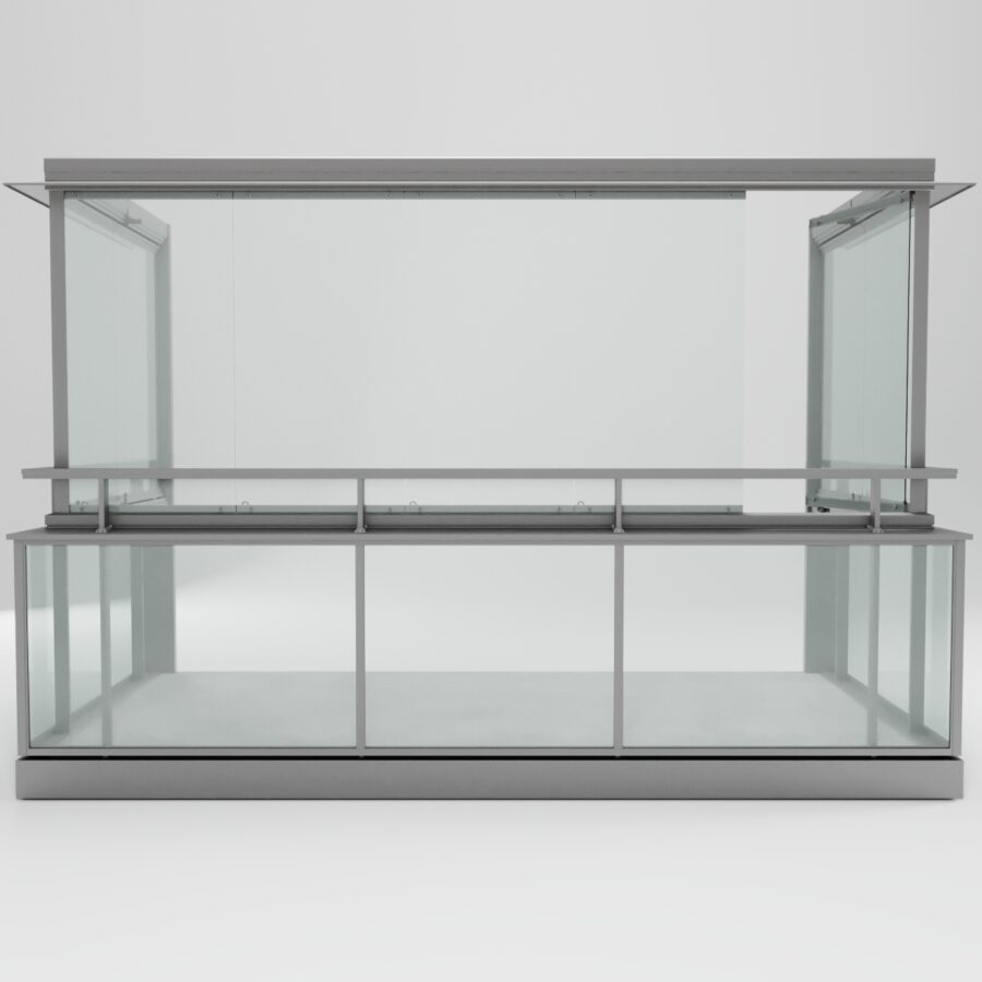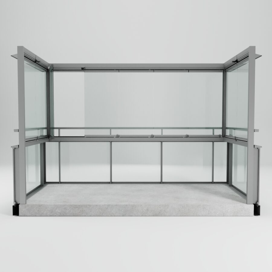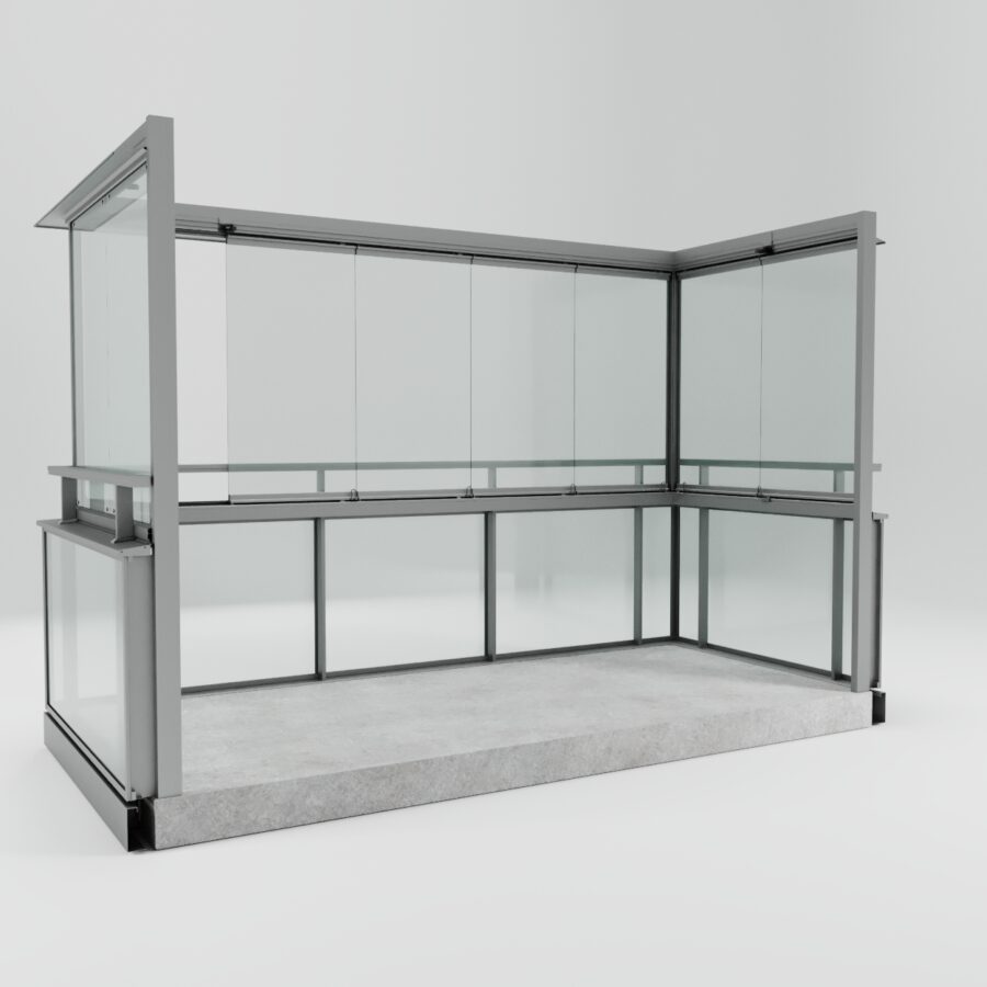 Glasluckorna skjuts undan och samlas för att vikas åt sidan för att skapa en helt öppen balkong. Systemet är topphängt och ger en lätt, stabil och tyst gång – med maximal öppningsbredd och fri sikt.