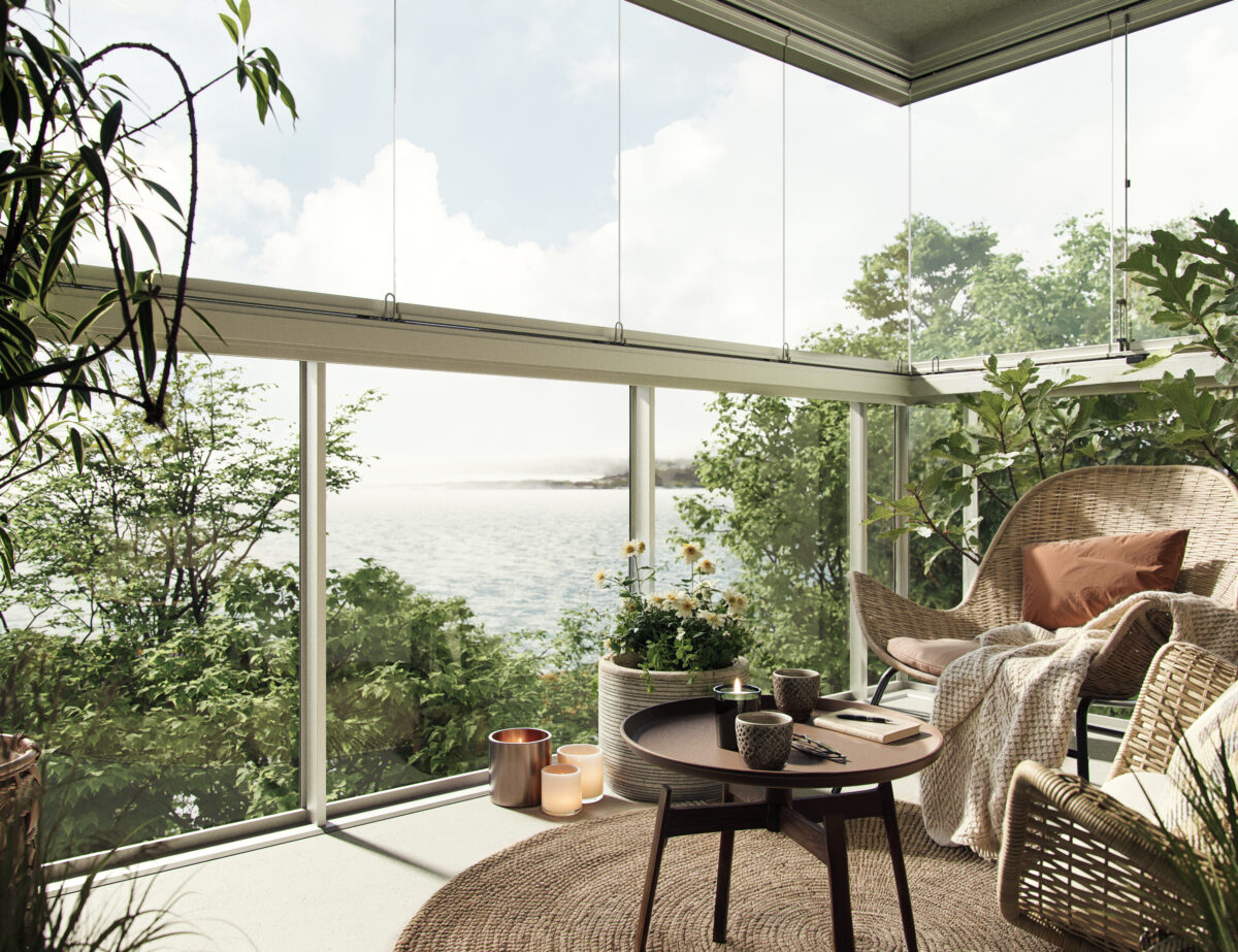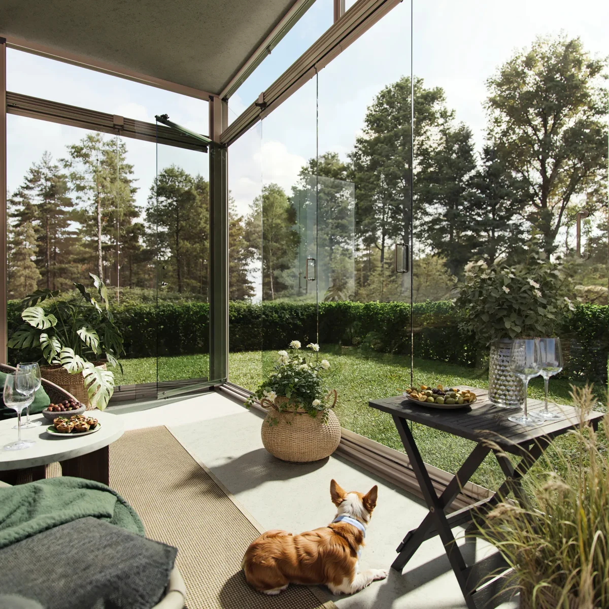Öppna inglasningen när du vill släppa in naturen och den friska luften. Eller stäng för att skydda ditt uterum mot väder och vind, utan att stänga ute ljuset och den luftiga känslan.