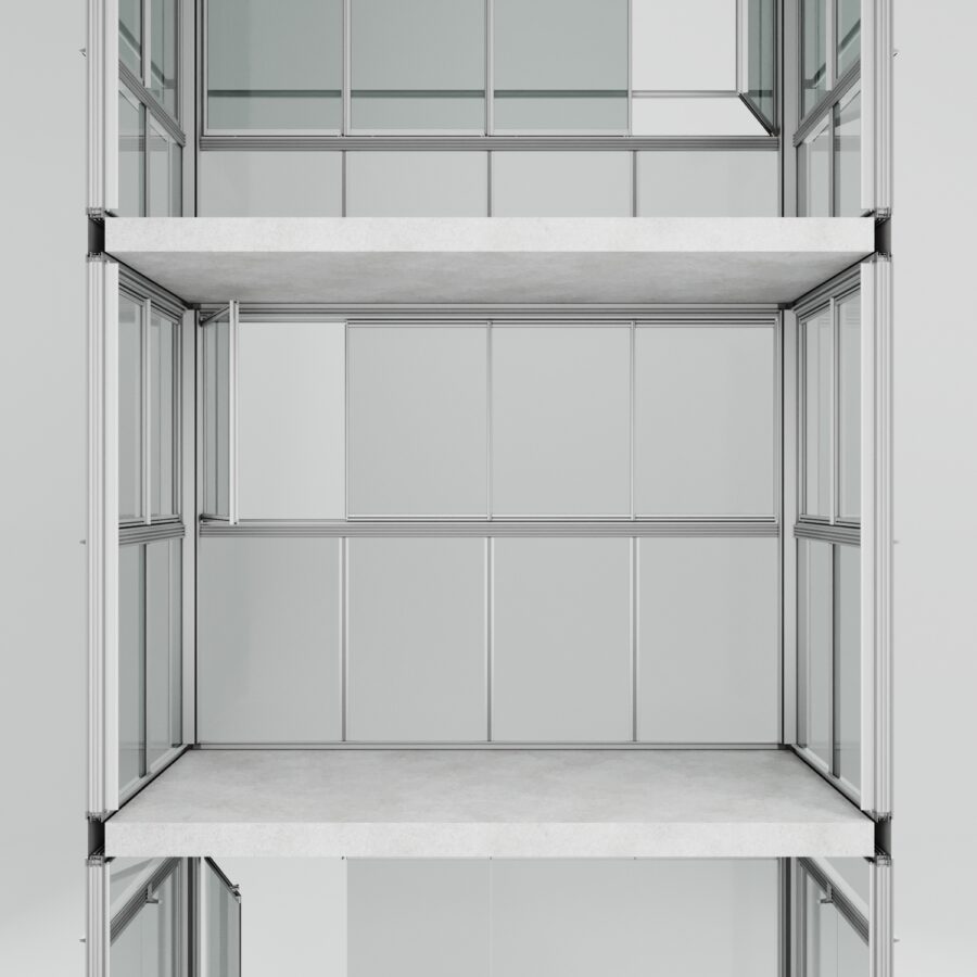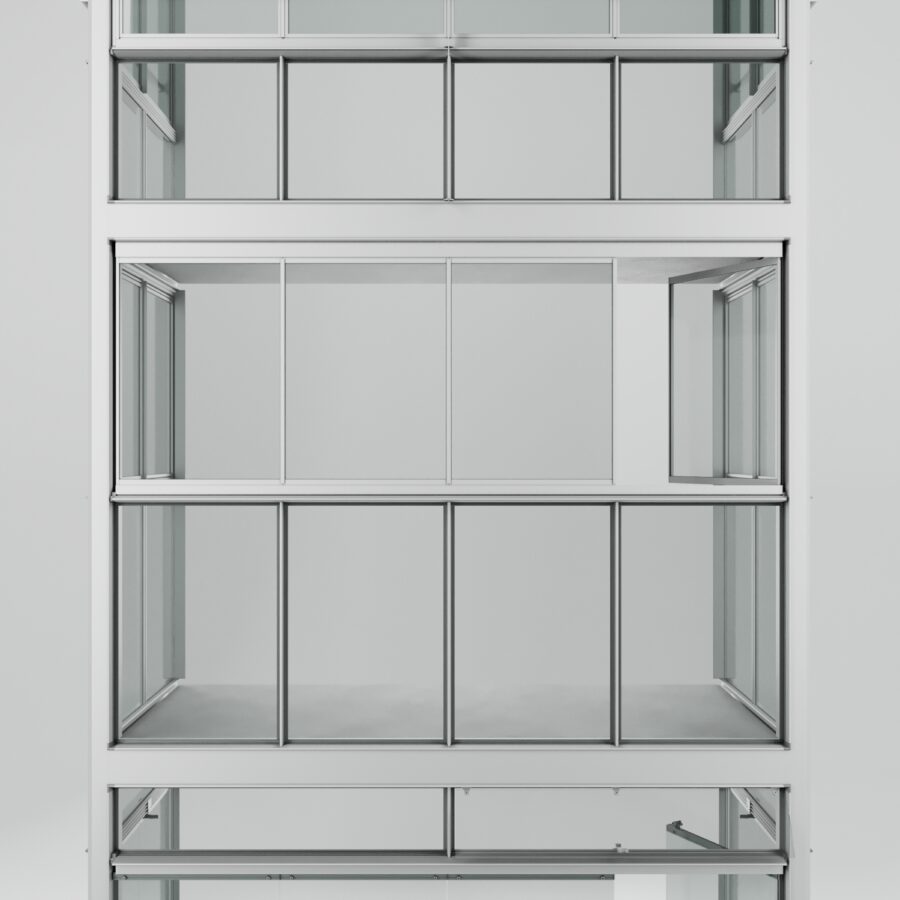Lösningen är utvecklad för nordiska förhållanden och kombinerar robust konstruktion med genomtänkta detaljer som ger hög täthet, lång livslängd och minimalt underhåll. Tack vare systemets moduluppbyggnad kan varje balkong anpassas i både uttryck och funktion – från val av dörrar eller luckor till bröstningar, överljus och fasta partier.